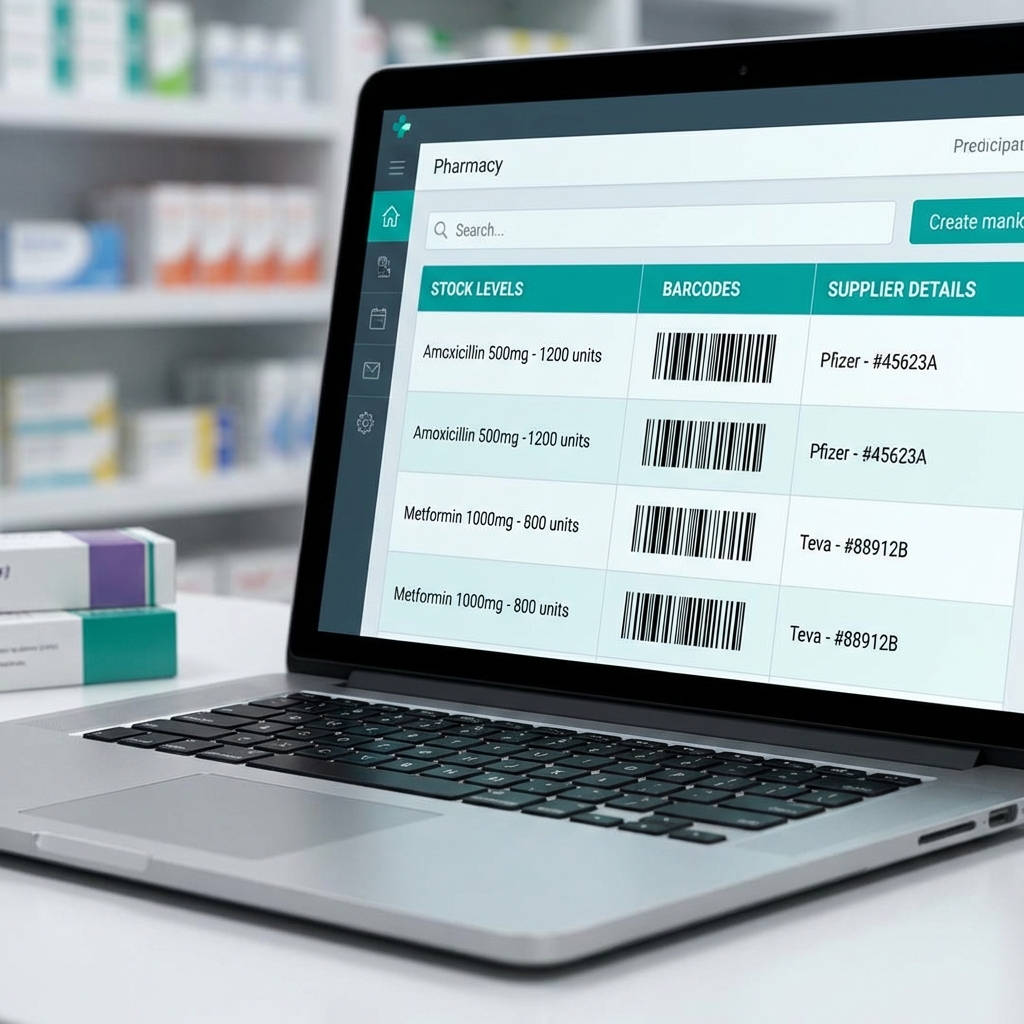 Track drugs, set low-stock alerts, and manage supplier orders automatically.